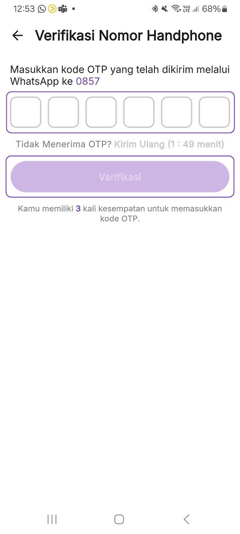 Untuk keamanan, Anda akan diminta untuk memasukkan One Time Password (OTP) yang dikirimkan melalui SMS atau token keamanan. Masukkan OTP dengan benar untuk memvalidasi proses transfer yang sedang Anda lakukan.